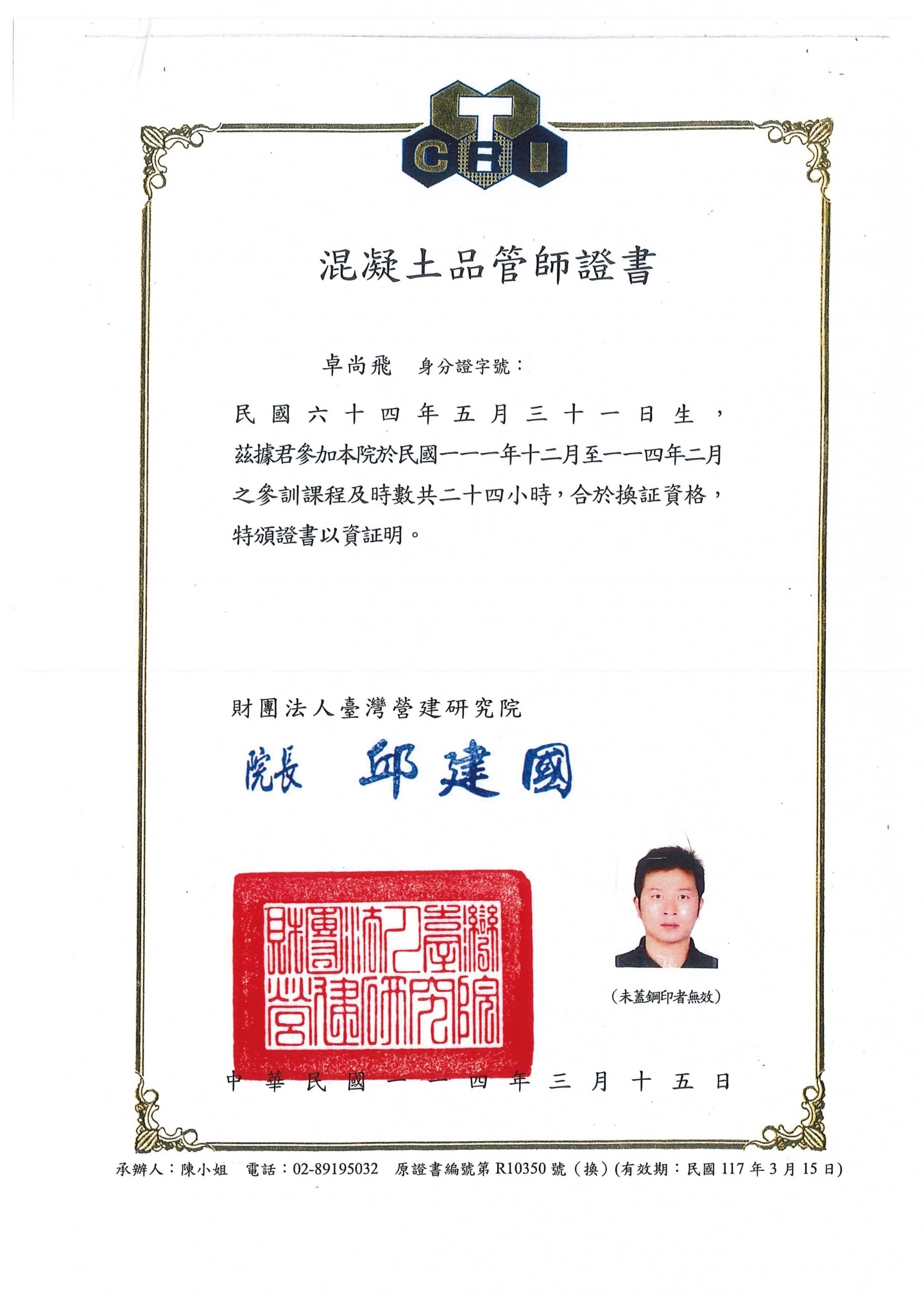 混凝土品管師證書
