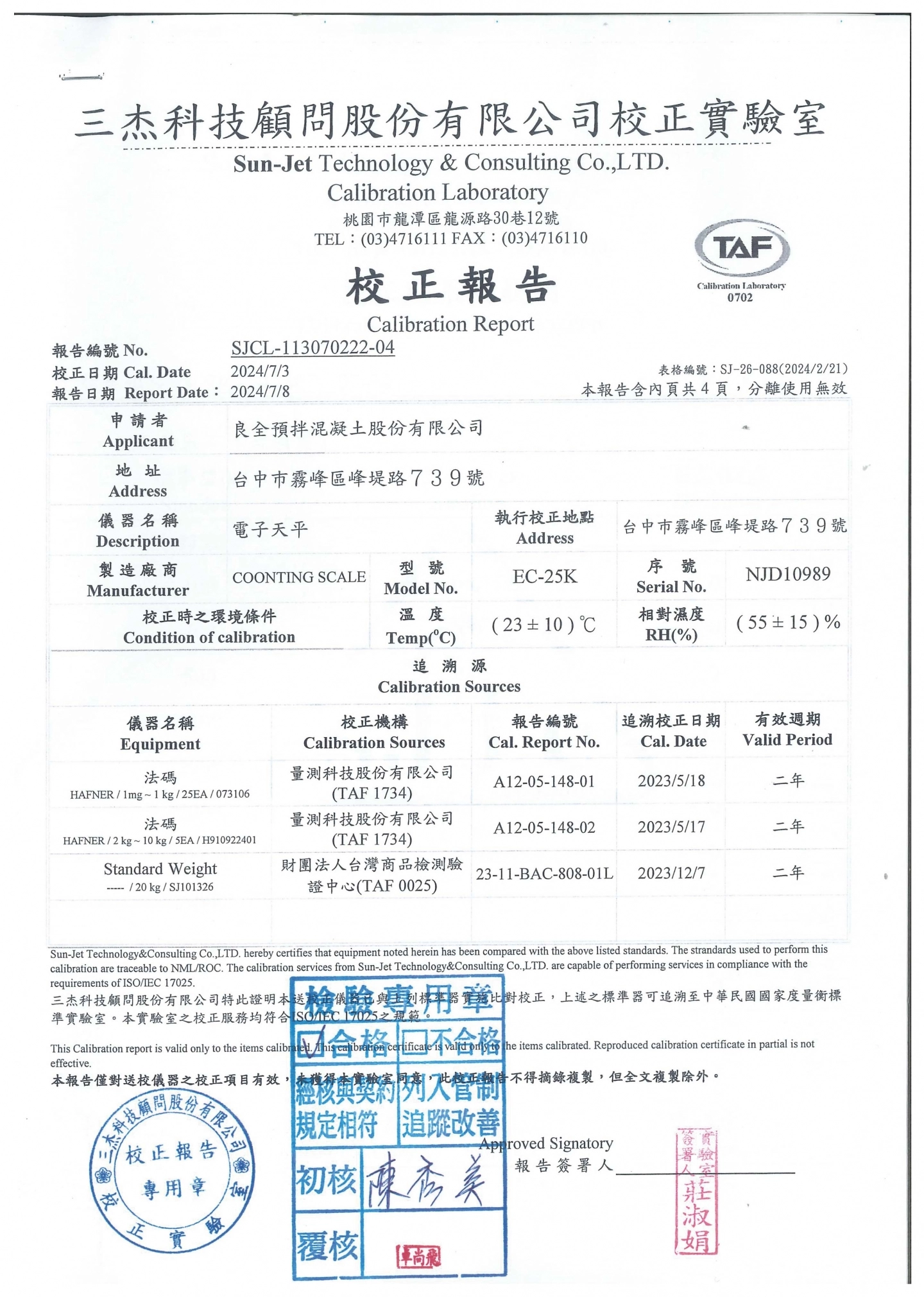 電子天平-校正報告
