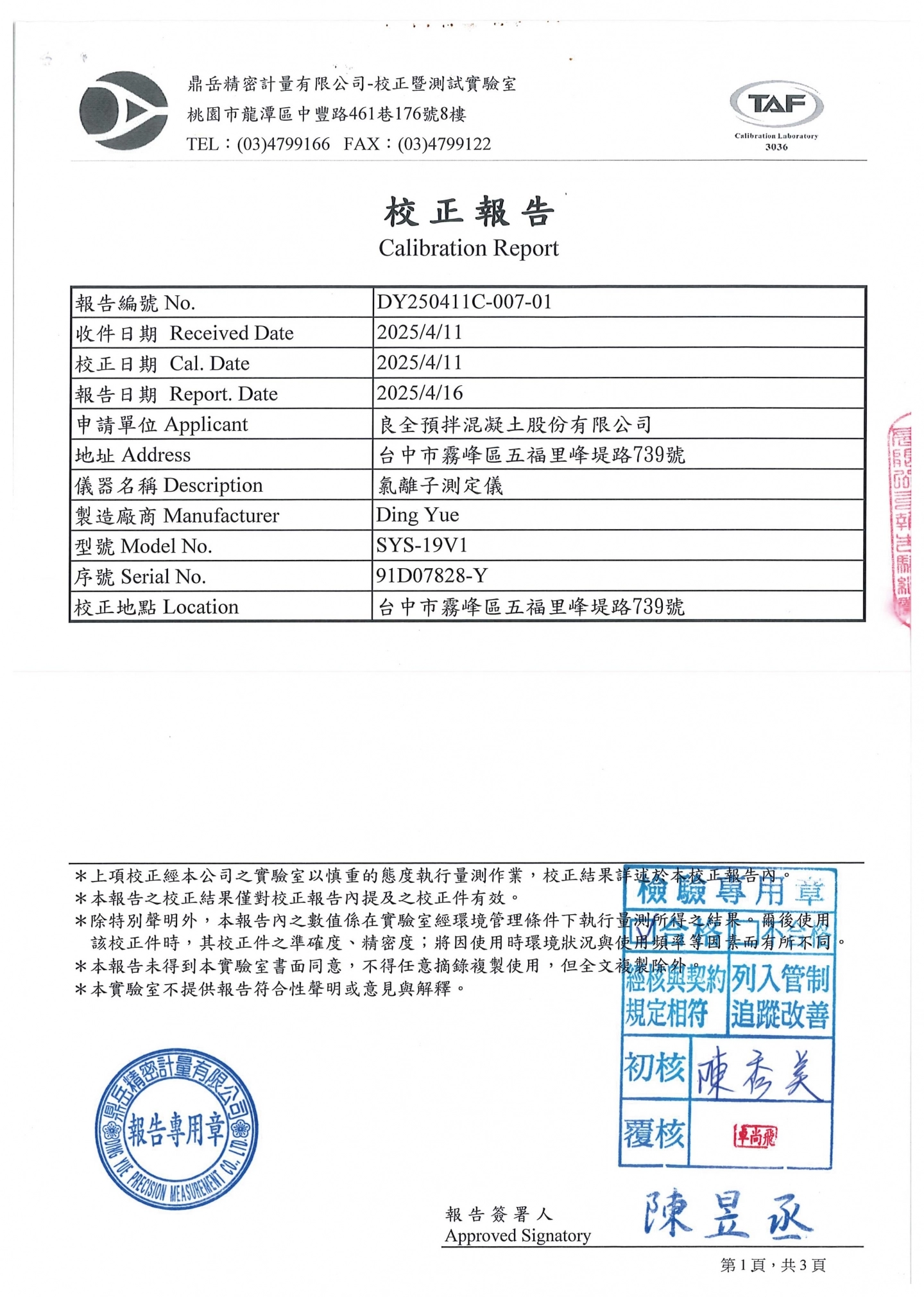 氯離子測定儀校正報告