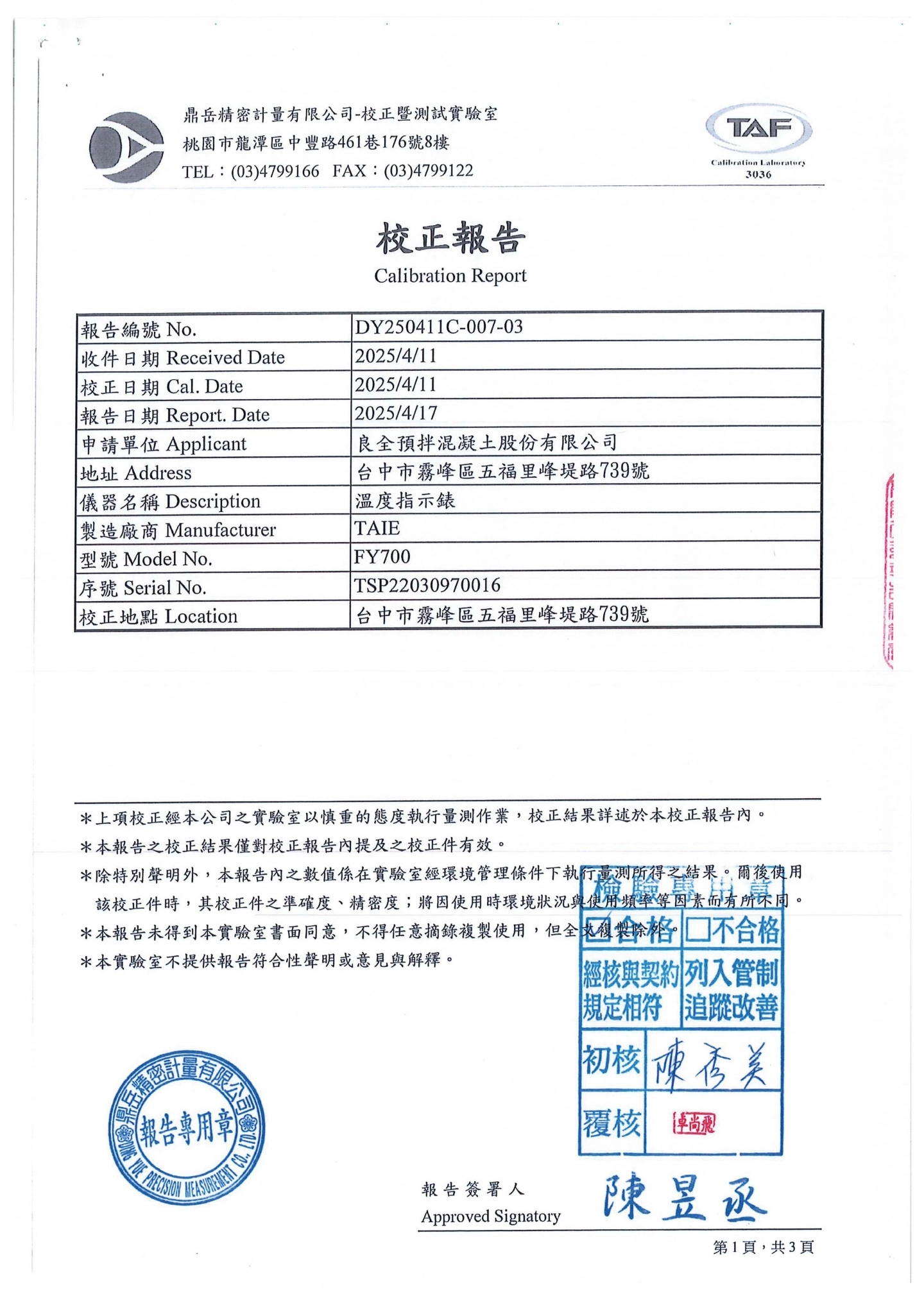 溫度指示錶校正報告