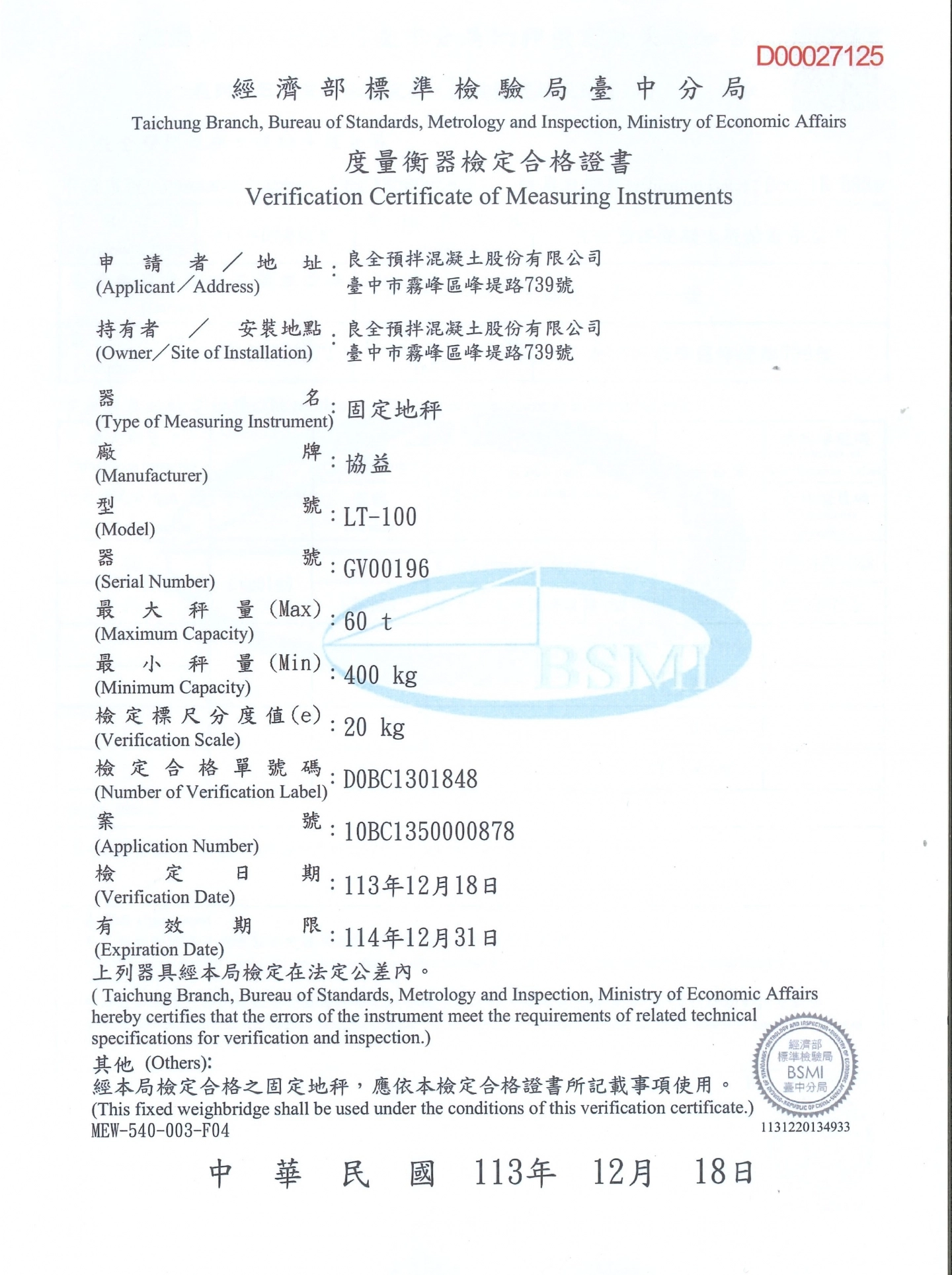 地磅合格證書
