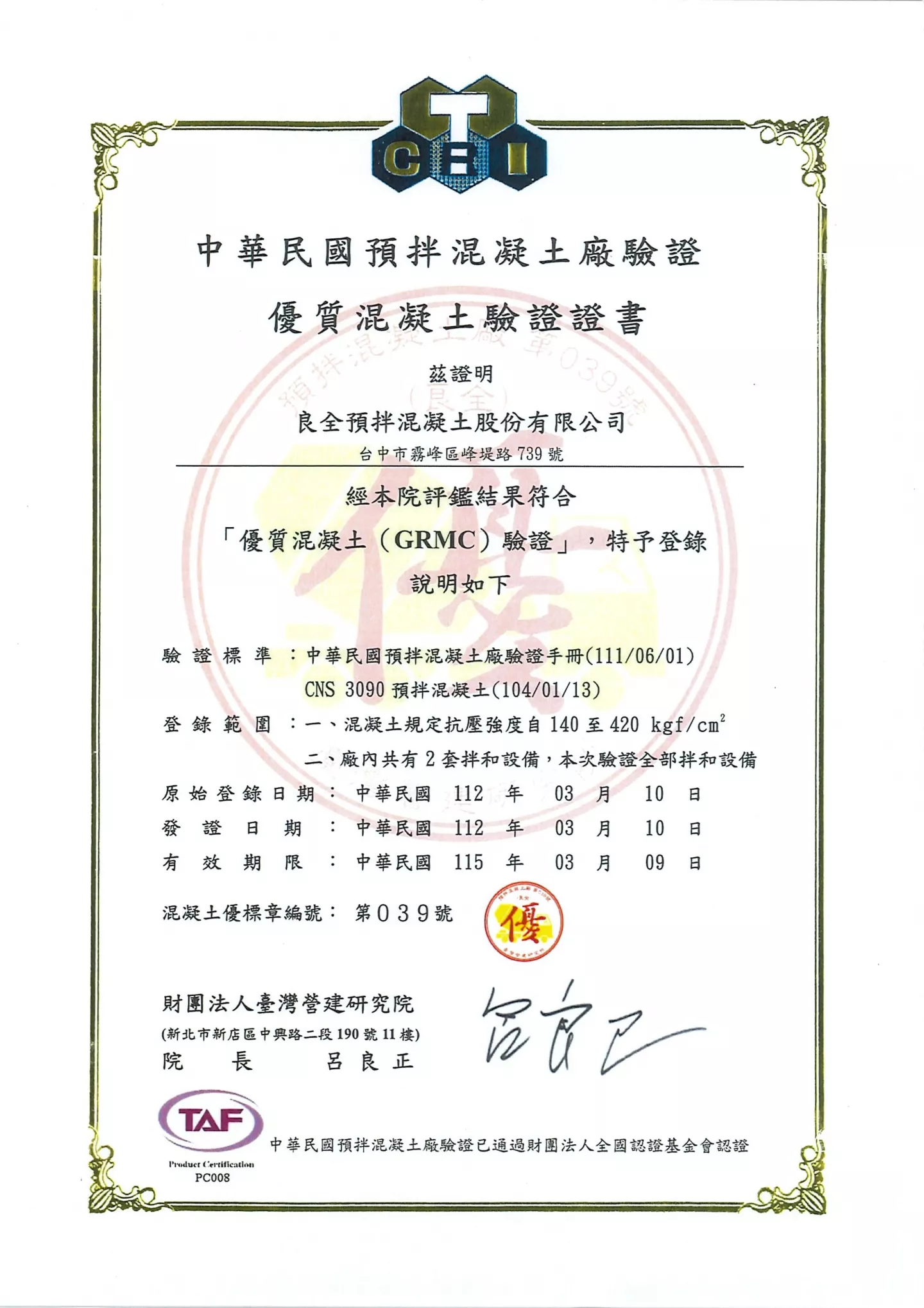 盼能促進國內預拌混凝土廠建立高品質混凝土之形象,以保障消費者使用之安全性。